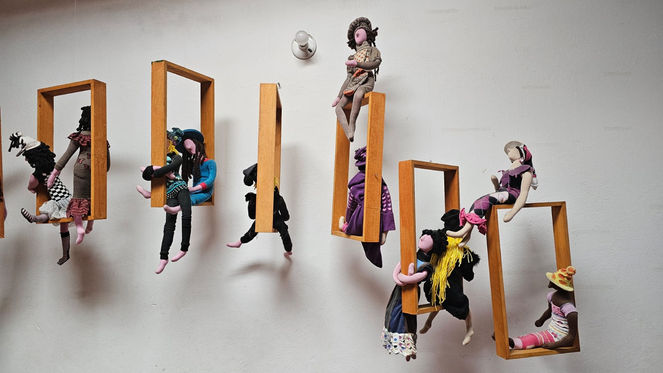 ... Yo no creo que sea un trabajo de reciclaje, pero sí creo que es un trabajo de aprovechamiento de los materiales, de lo que uno tiene en la casa para jugar. Aunque la gente no crea, esto es arte, arte es crear y esto es recrear, o sea crear dos veces.